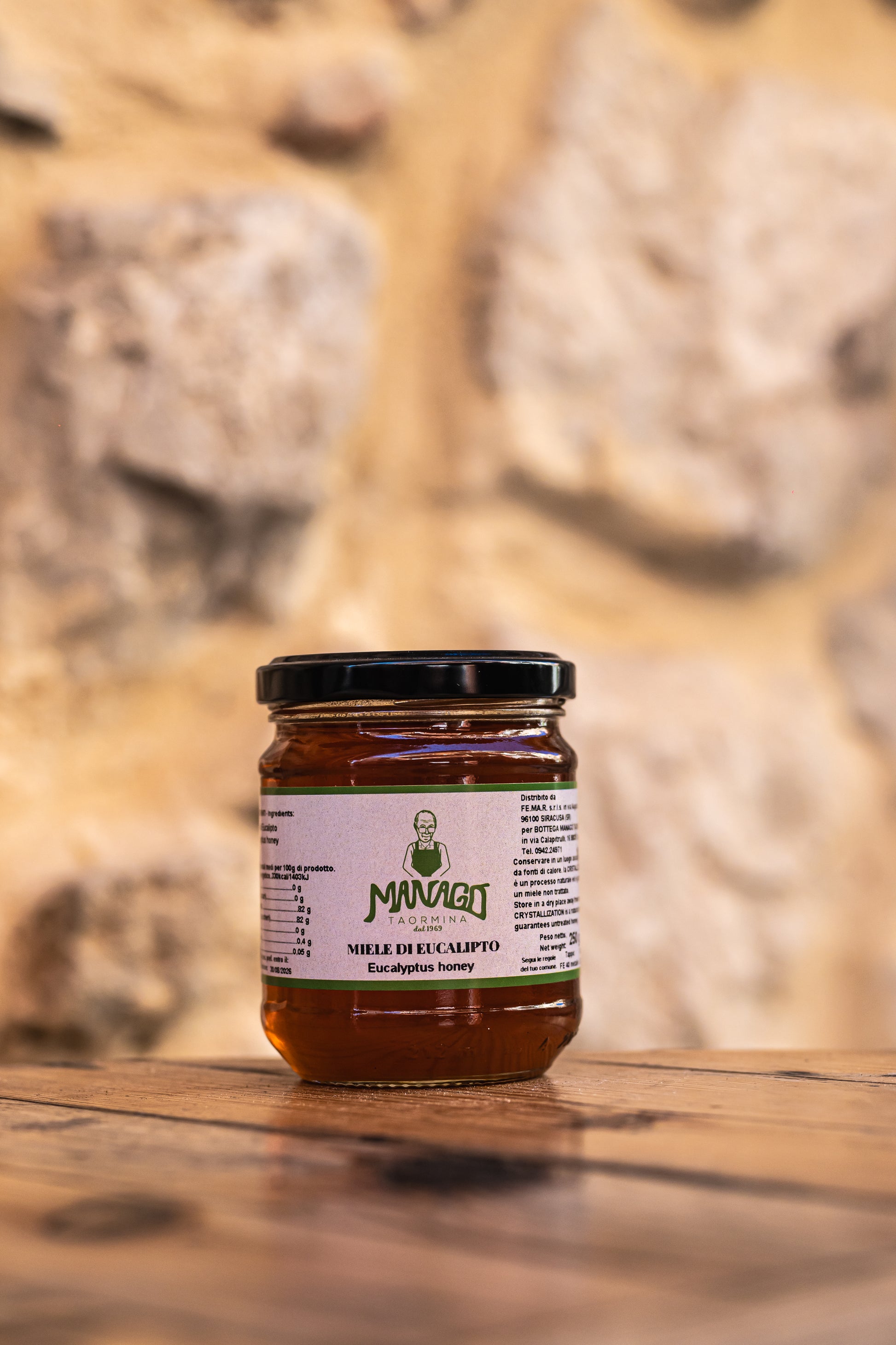 Il Miele di Eucalipto Managò è un prodotto dal carattere deciso e inconfondibile, che racchiude i profumi intensi degli imponenti alberi di eucalipto diffusi nelle assolate campagne e lungo le zone costiere siciliane. Questo miele si presenta con un colore ambrato che, cristallizzando in modo naturale, assume sfumature più chiare e una consistenza piacevolmente compatta e fondente. Al naso e al palato offre un profilo aromatico unico e persistente, caratterizzato da note legnose, sentori balsamici di liquirizia e un leggero finale caramellato che lo rende meno stucchevole rispetto ad altre varietà.